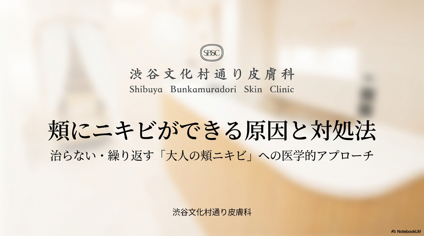 頬にできるニキビは、皮脂だけでなく、炎症の深さや体の内側の要因が強く関係します。治らないと感じた場合は、治療が不足しているのではなく、段階が合っていない可能性があります。保険治療を基盤に、必要に応じて治療を調整することで、頬ニキビは十分に改善を目指せます。
